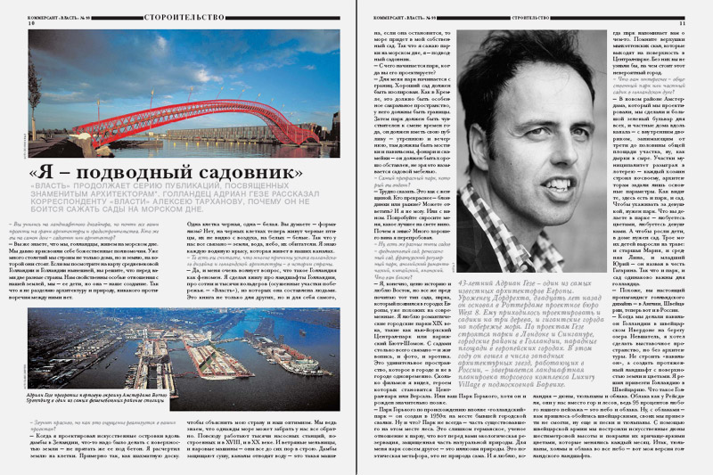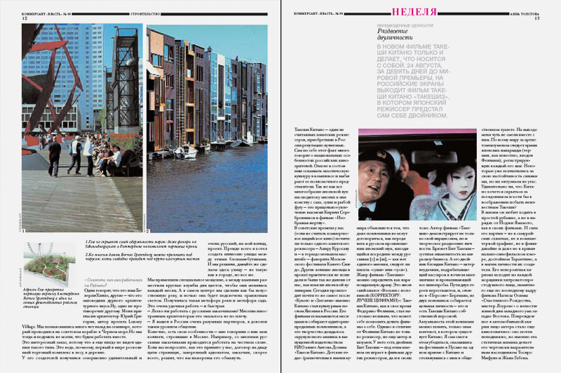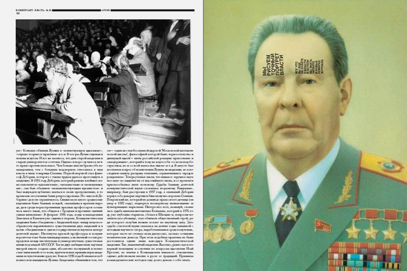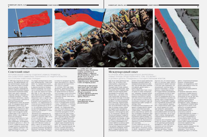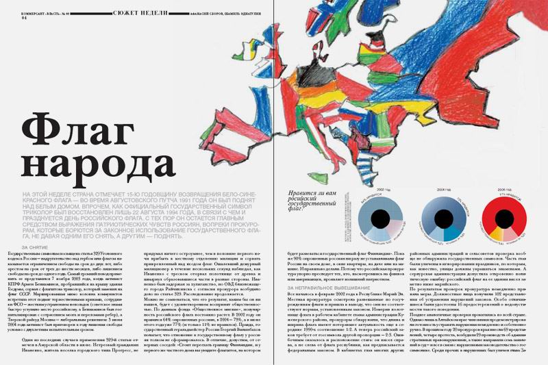 Курсовой проект студентки нашего четвертого курса Екатерины Бычковой. Напоминаем, задание состояло из редизайна журнала «Коммерсантъ Власть» (с графиками, диаграммами, иллюстрациями, саморекламой) и разработки приложения к нему (с фоторепортажем и самостоятельно написанным интервью).