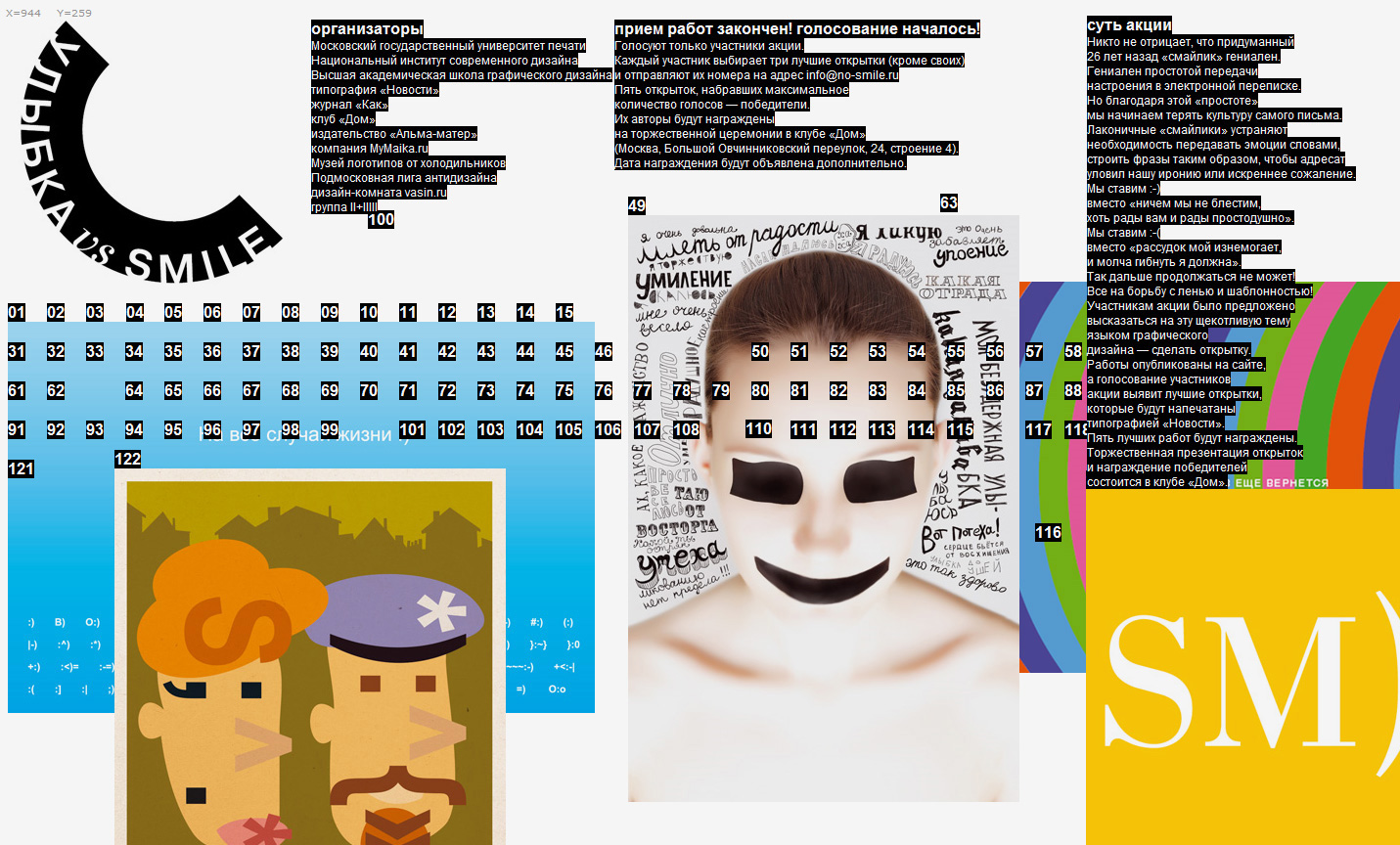 26.11.2008 УЛЫБКА vs SMILE — голосование На www.no-smile.ru началось голосование участников акции УЛЫБКА vs SMILE. |