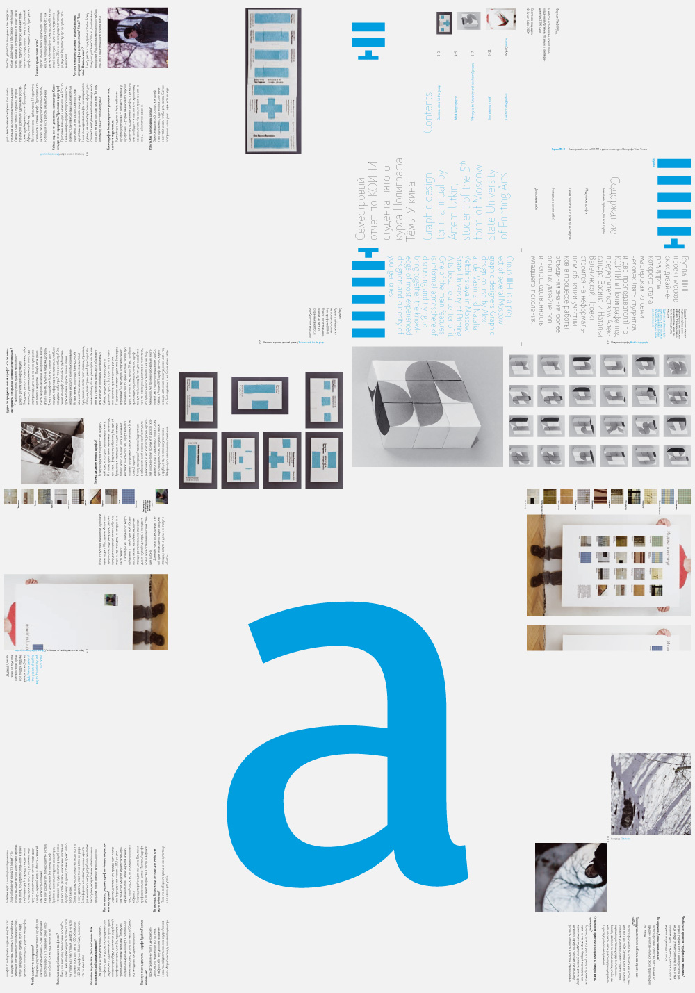 Последнее, обобщающее задание — буклет, в который вошли все задания, сделанные за семестр, плюс интервью с самим собой.