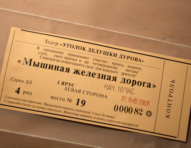 Поздравление от Жени Чарского с вложенным билетом (обращаем внимание на время начала спектакля):